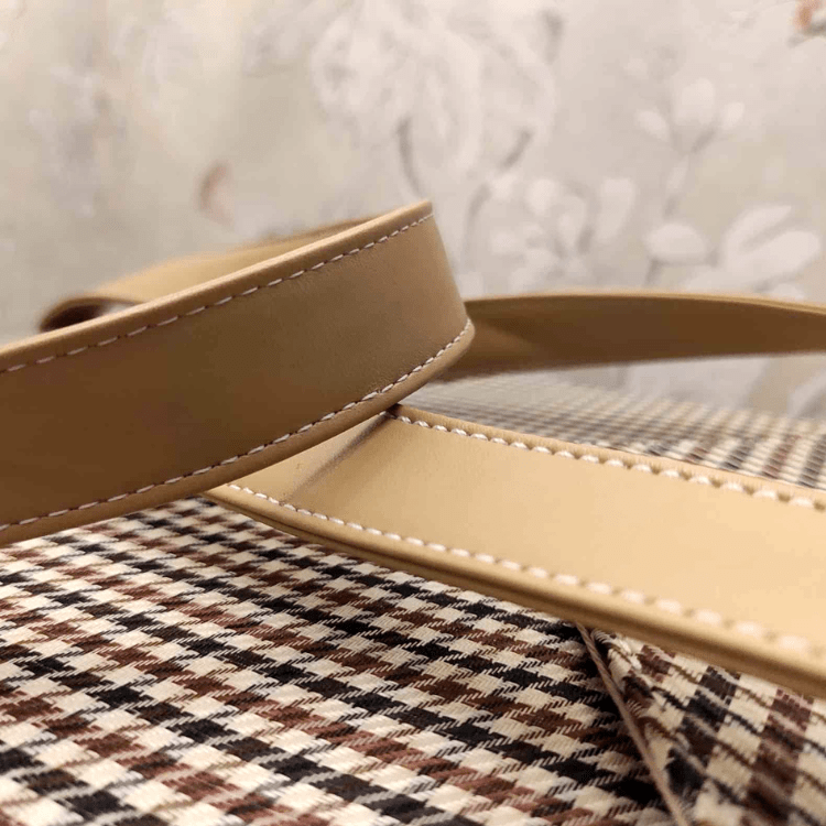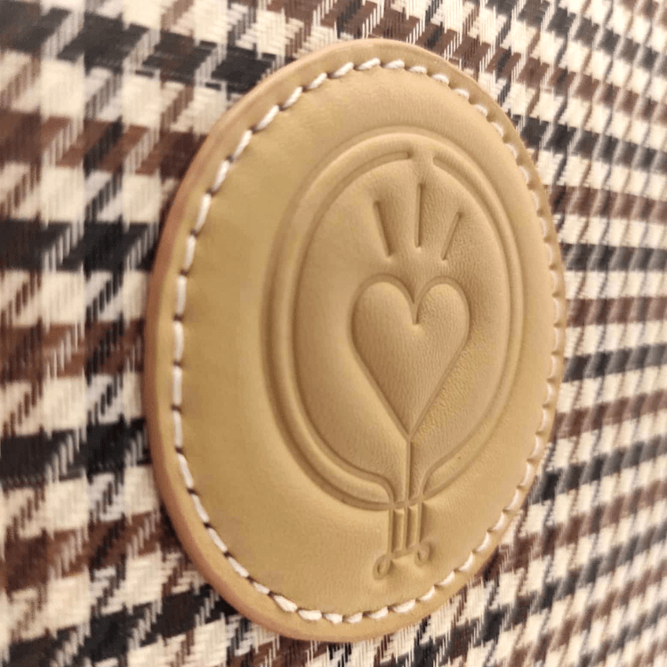La cover è disponibile in tartan, in pied de poule o a scacchi, ed è realizzata con un doppio tessuto. Il lato esterno del box è in cotone impermeabilizzato. Il lato interno è in poliestere, così è lavabile e più facile da pulire. Tra i due tessuti, un’anima in cartone isolante, che mantiene invariata la temperatura del dolce il più possibile e mantiene in forma la borsa.